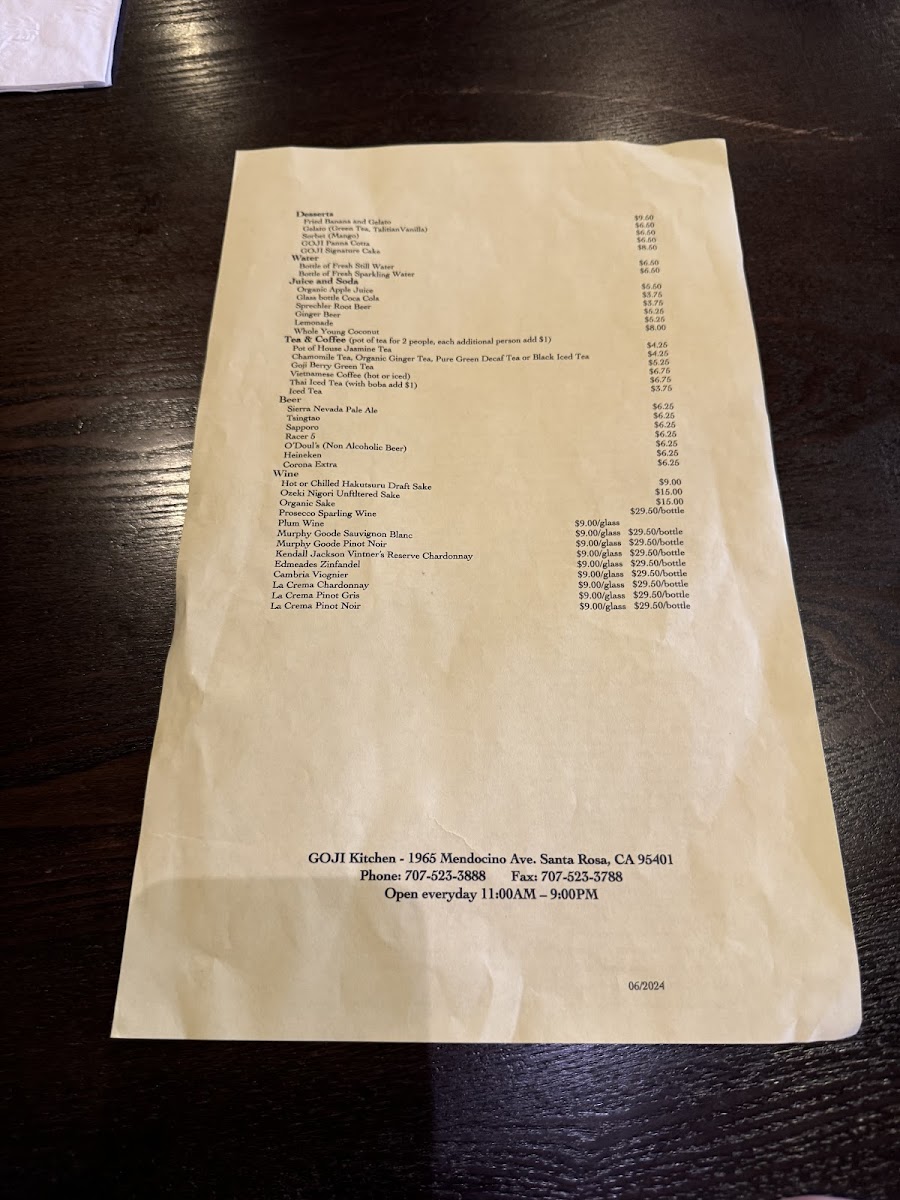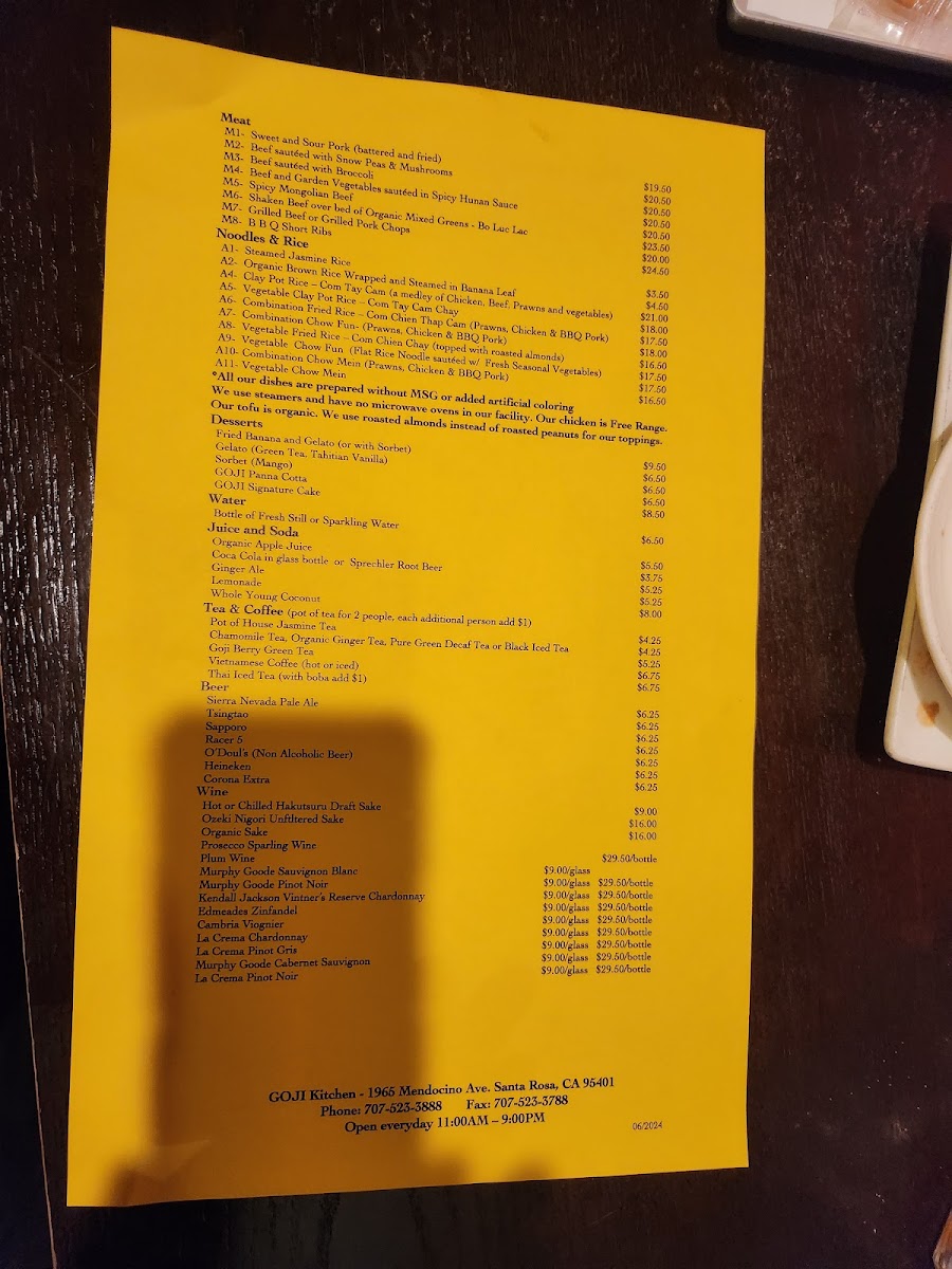 Juice & Soda: The beverage selection includes organic juices, traditional sodas, and specialty drinks like whole young coconut juice and ginger beer. These options complement the food offerings and cater to various tastes.